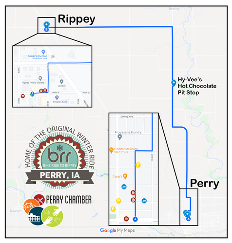 BRR! It's the name and usual sentiment for the beloved winter bike ride that has become an annual tradition for thousands of bike riders since 1978! Perry's 49th Annual Bike Ride to Rippey (BRR!) is Saturday, February 7, 2026.