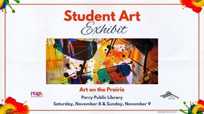 The Perry Public Library is pleased to showcase local student artists in the Art on the Prairie Student Art Exhibit on Saturday, November 8, and Sunday, November 9. Come view original artwork from Perry Community School students throughout the library all weekend.