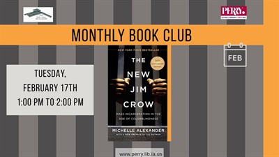 This February, our Monthly Book Club will read a book named “one of the most important nonfiction books of the 21st century,” Michelle Alexander’s The New Jim Crow: Mass Incarceration in the Age of Colorblindness. Join us on Tuesday, February 17th, from 1:00 pm to 2:00 pm. Anyone interested in participating in the Book Club is welcome to come. For more information, visit www.perry.lib.ia.us, call 515-465-3569, or come to the library.