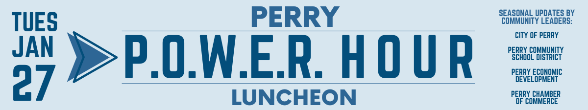 Learn from Community Leaders about Perry happenings with this seasonal P.O.W.E.R. Hour luncheon. January presenters (subject to change):
