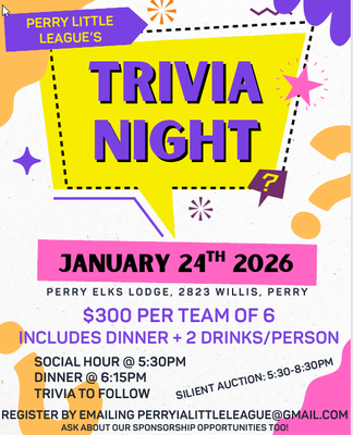 Enjoy a night full of TRIVIA to support the Perry Little League!